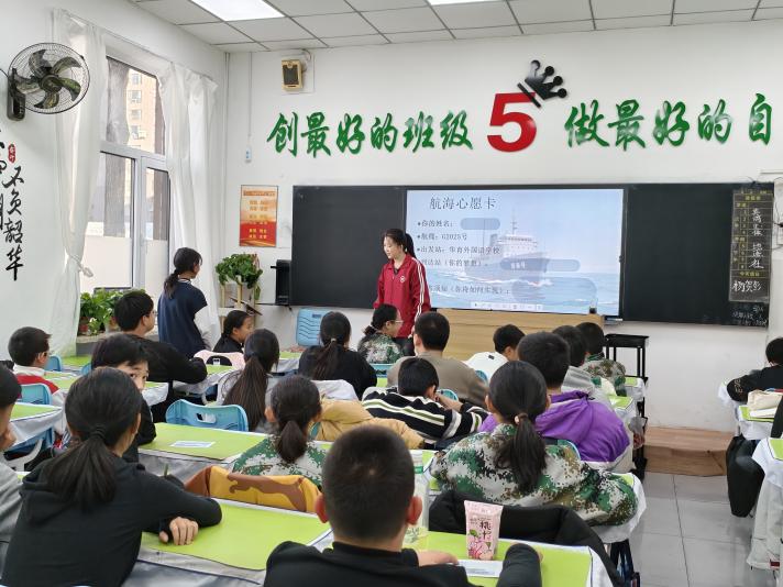 活动最后,师生共同聆听习近平主席对青年的寄语,齐声朗诵《少年中国说》等青春诗篇;随后,学生以“我以____为帆,乘长风,破碧浪”为句式、用“转动梦想的罗盘,发动毅力的引擎,扬起合作的风帆”作结尾,创作“青春誓言小诗”,完成创作后自愿分享作品,由全班投票选出“梦想小达人”,激励学生在青春航路上书写精彩。