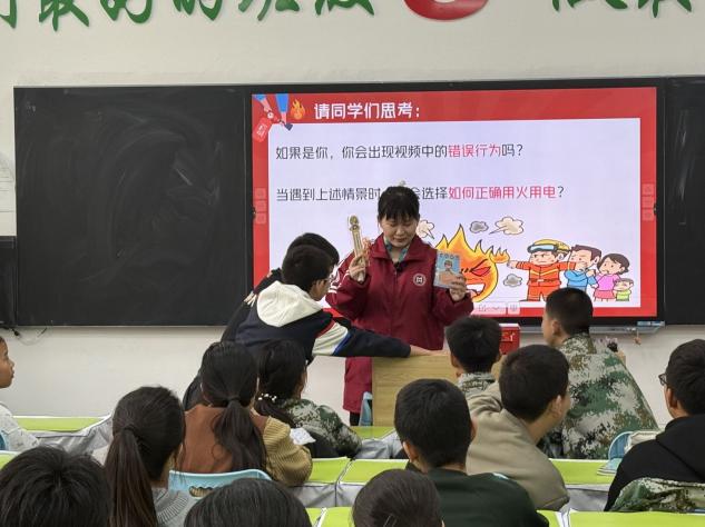 在互动有奖问答环节,邓冉同学用提前整理的消防知识题点燃现场,同学们纷纷举手参与,积极抢答,趣味十足的互动不仅检验了学习成效,更让消防知识在轻松愉悦的氛围中深入人心。